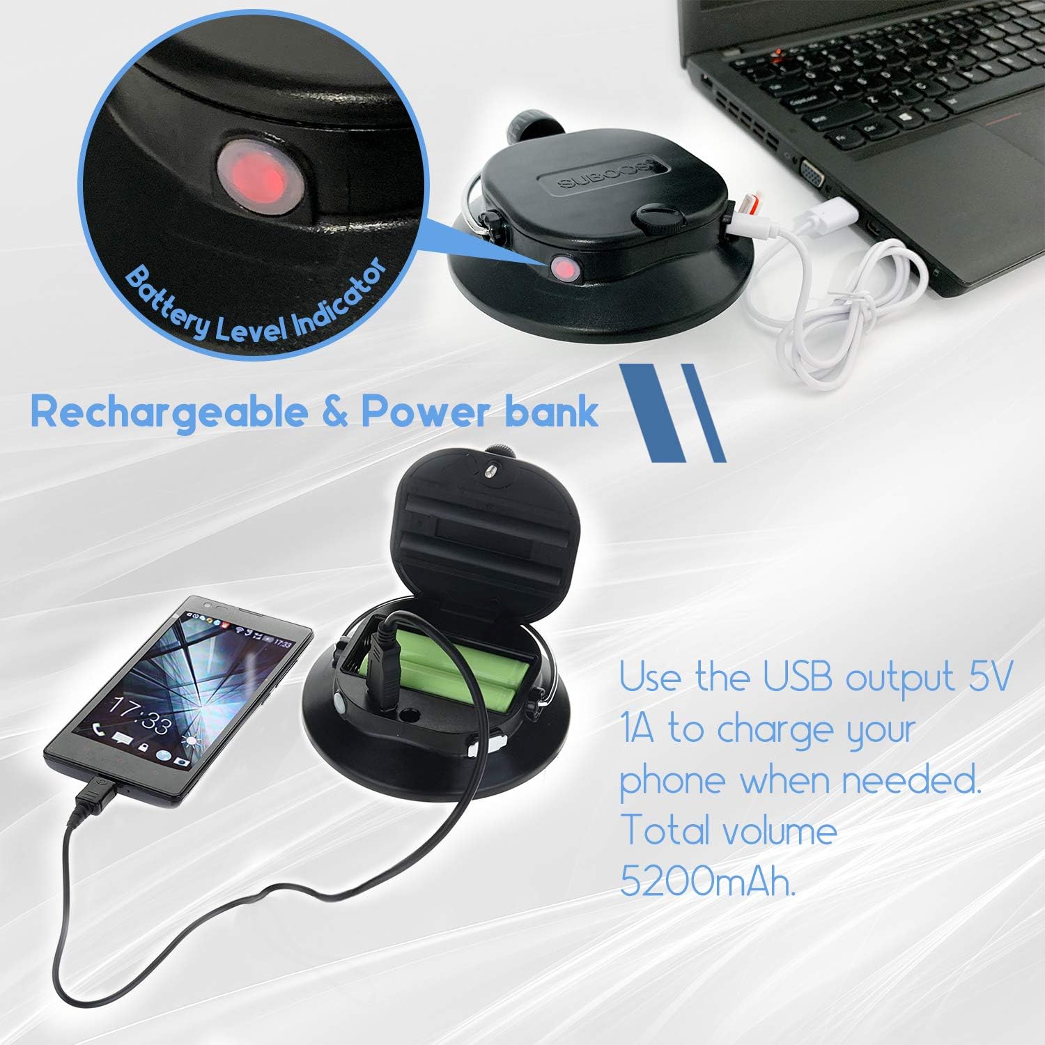 【RECHARGEABLE & LONG LASTING】Save your battery cost by using USB rechargeable lantern, it comes with 5200 volume, USB cable provided. The lantern can also be used to charge your cell phone when camping, hiking and sailing. Maximum runtime: 200hrs on low setting.